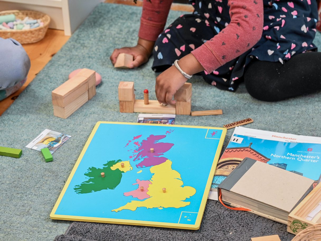 To develop the large muscles of the body, it’s important to reach gross motor milestones – such as walking, running, jumping and climbing, throwing and catching. In Manchester Montessori House we recognise how gross motor development presents many health benefits, boosts confidence and self-esteem, and the ability to assess risk. That’s why Montessori settings provide many activities that build muscle memory, creative movement, and motor planning. Children , while playing outdoors will have an opportunities to climb, hop and jump while building obstical course or using equipment provided. They will have space to improve their balance and spatial coordination, but also join different group games and activities .