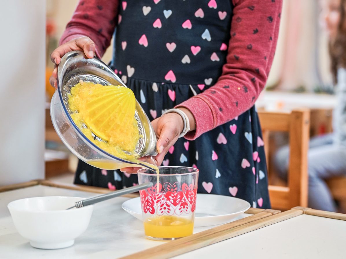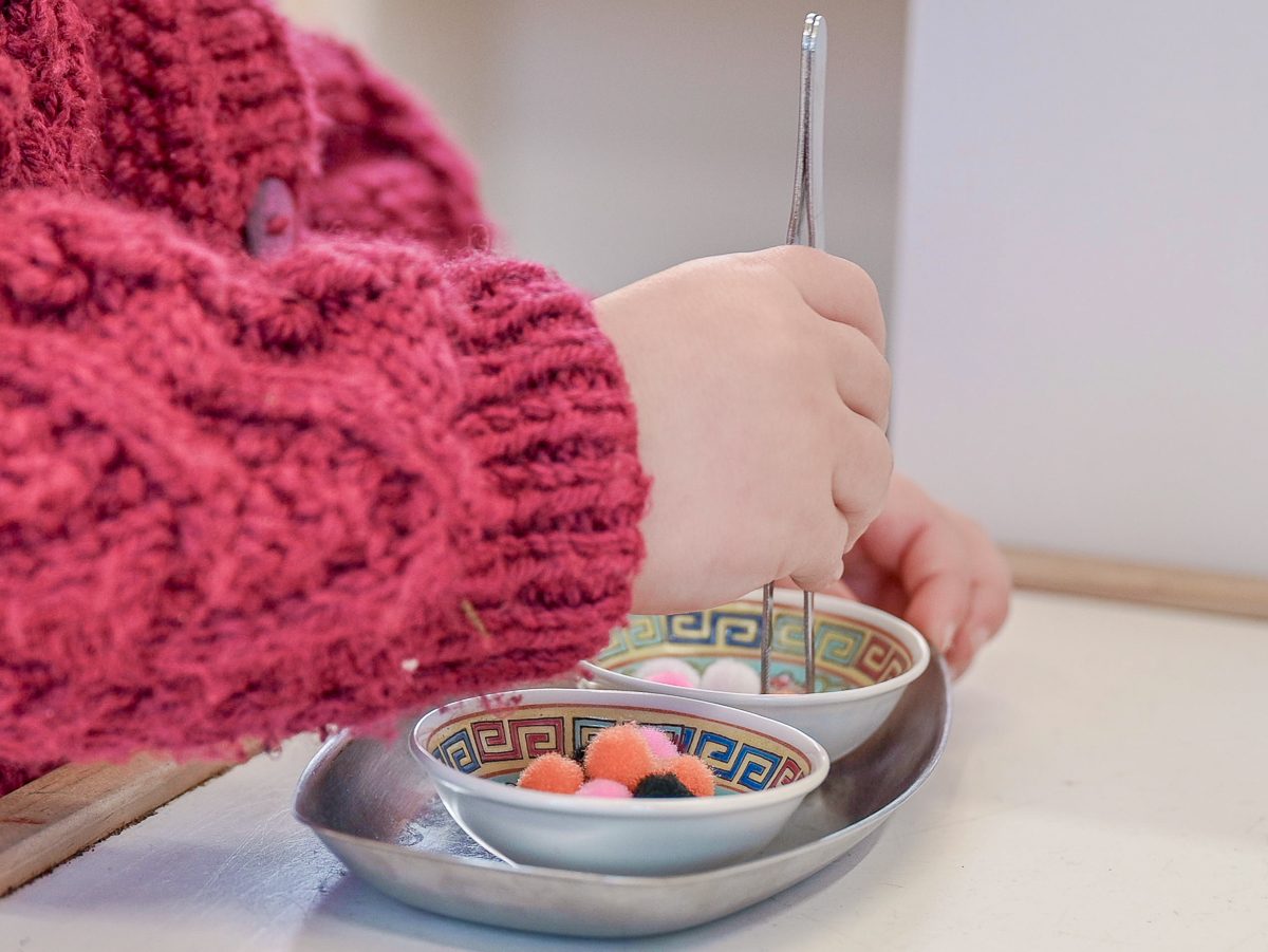 Children will be naturally drawn to this area because these materials are most familiar to them. This familiarity also serves to provide the children with a feeling of security and well-being. The activities will contain objects and materials that are normally encountered in the everyday living experiences of the children’s culture. Many of them are fundamental activities that children need to master to be able to live comfortably in the real world. Most of the activities of practical life will fall into four main categories: grace and courtesy, care of self, control of movement, and care of the environment.
