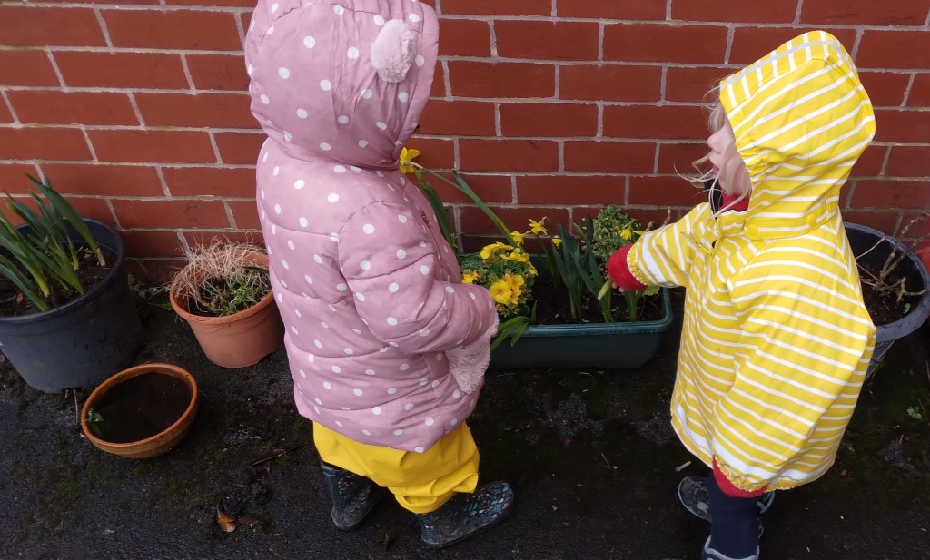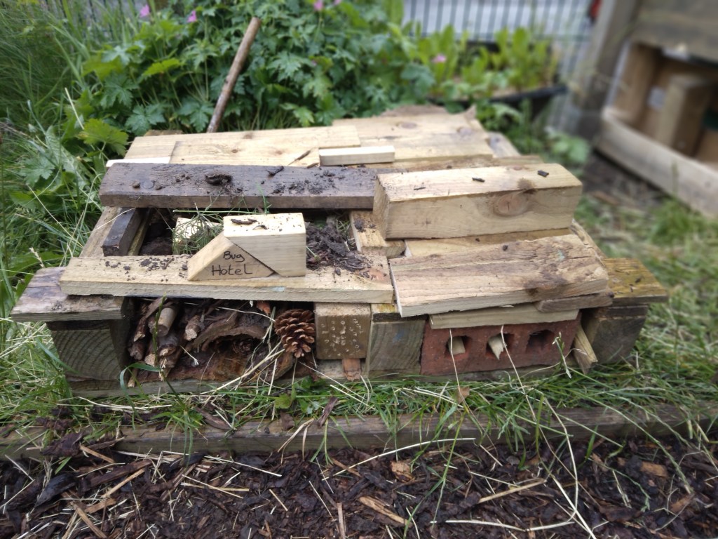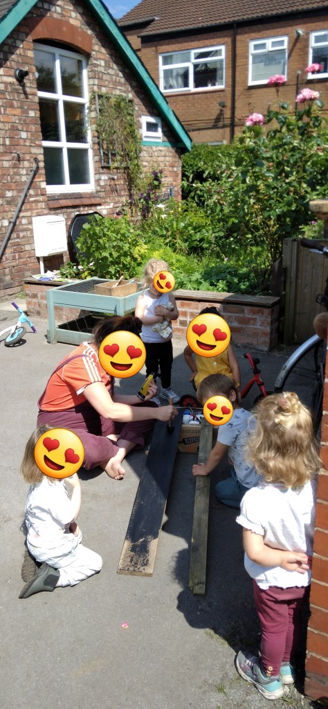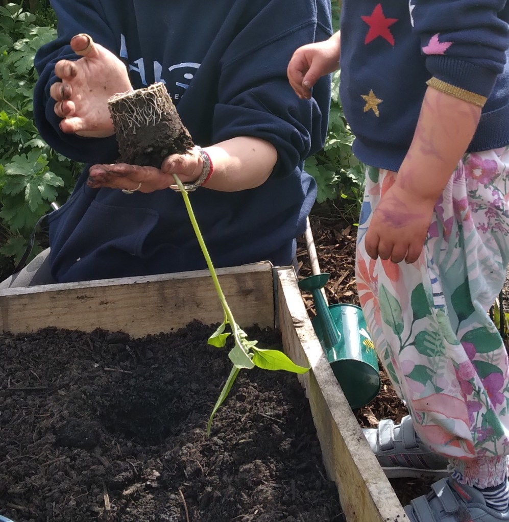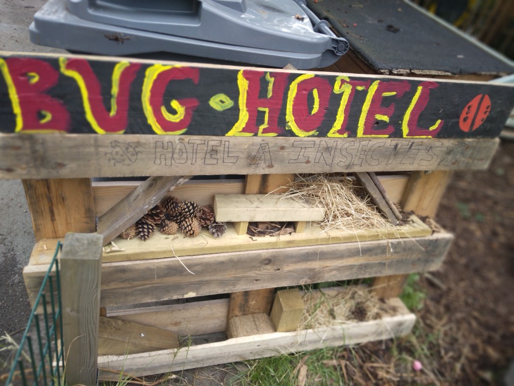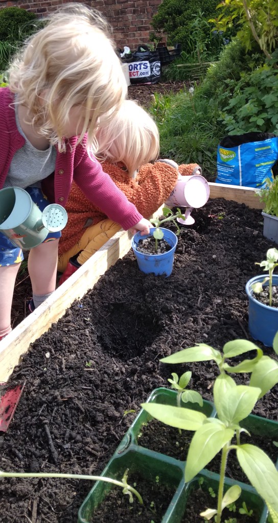 We at MMH redesigned our garden area with the input of the children. Providing space for plants (our nature and wildlife area, to that a pond and bug hotel which the children have designed and made. Observing on daily basis with great interest. We have made 4 planters to grow flowers, herbs and fresh vegetables and care for daily.
