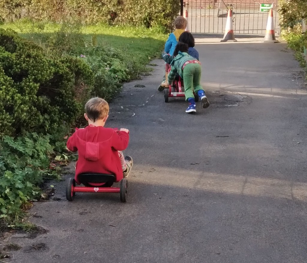 We have focus and lead many discussions on safe transportation. We talk about transport and different models of transport. Together with children, we look into the water transport, air transport and transport on land. Children were able to refine the differences. We also look at the green transport which is more environmentally friendly. Most our family’s scoot, bike or walk to the nursery, but we also have families who travel in a car or use public transport like buses and Metrolink. Together we discussed different options and looked at the different distances and places that we can reach on foot. We have promoted and encouraged children to join many walks throughout the year in a local neighbourhood, so they become familiar with the infrastructure and local facilities. It was amazing experiences.