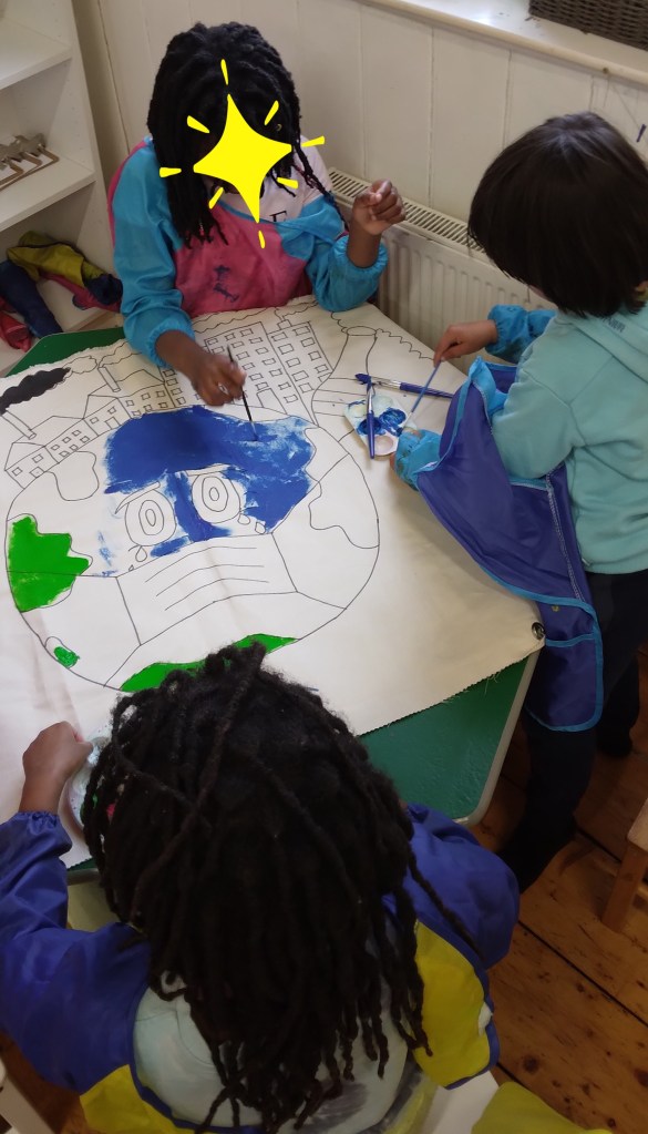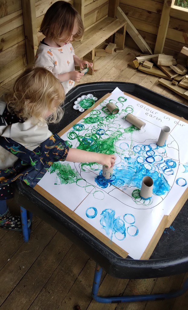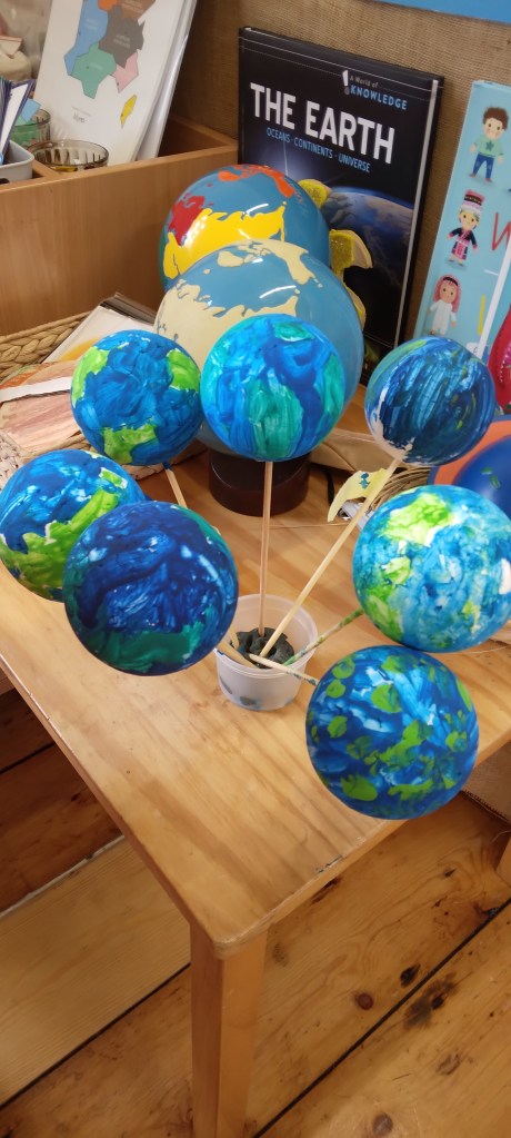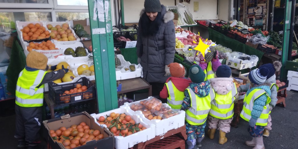 Topic of healthy living also reflects and relate to the health of our planet. We look at the planet Earth as the only planet that the life exists on, that we know so far. We have open discussions about how we can look after our planet, what can we do to sustain a long life of our planet and what can we do to improve the health of our planet through our daily activities. Children enjoy joining the different conversation and discussion that happened throughout the day throughout the weeks across the classroom, indoor and outdoor classroom that build awareness of becoming most sustainable and mindful while using sources given by Mother Earth. One of the important elements to promote that is our Forest School/ outdoor learning on Mondays, where children experience sessions delivered by qualified forest school practitioner.