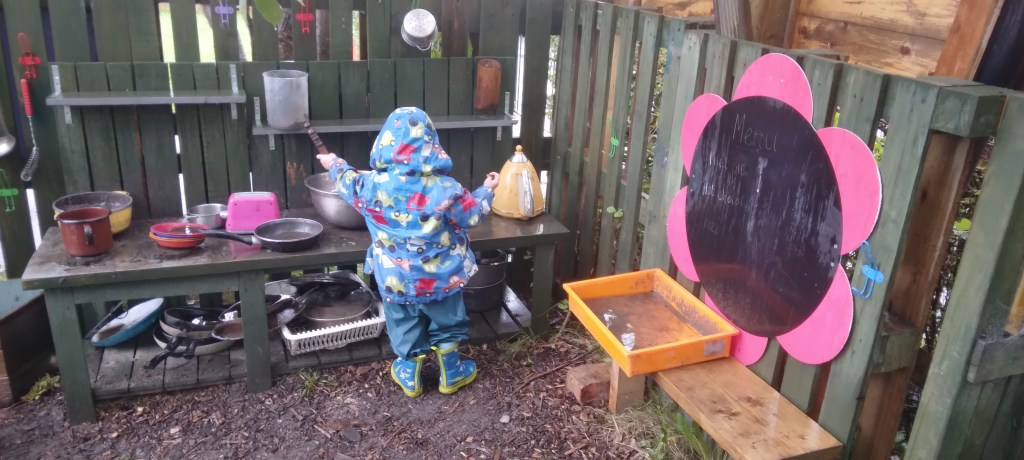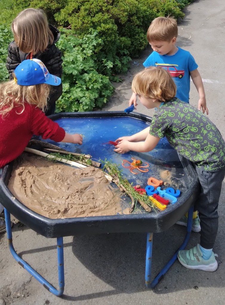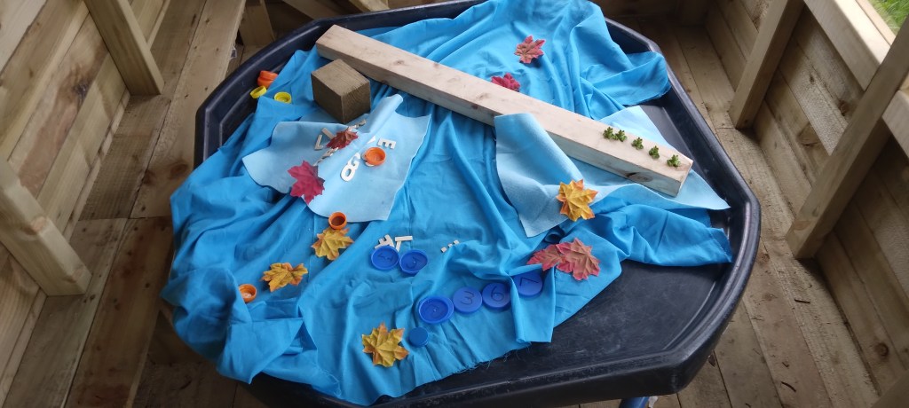 Not forgetting our outdoor classroom, filled with various small world and natural objects and weekly topic related activities on tuff tray.