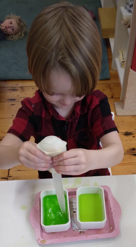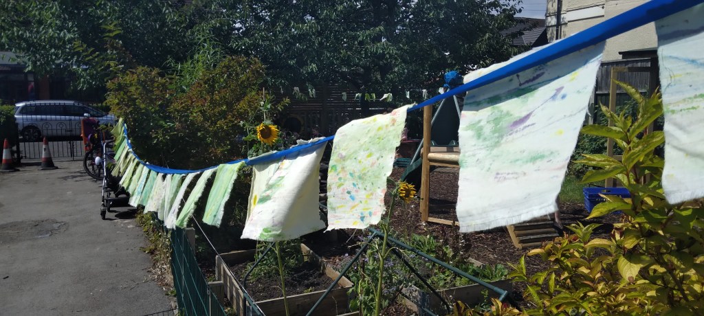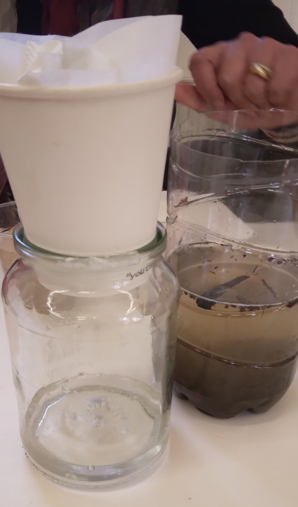 The children have had first hand experiences filtering water experiment and using the clean water to water the plants, learning how to make paper during our outdoor sessions.