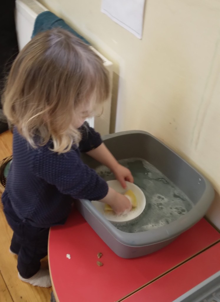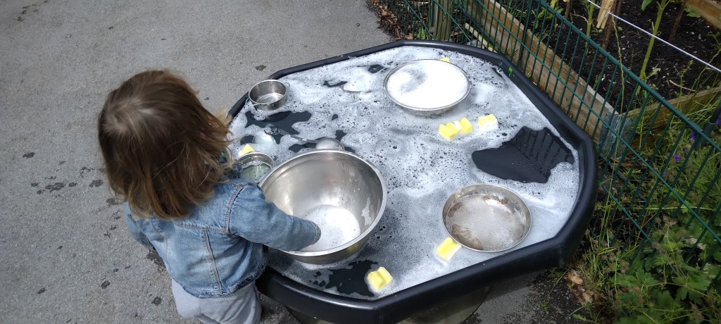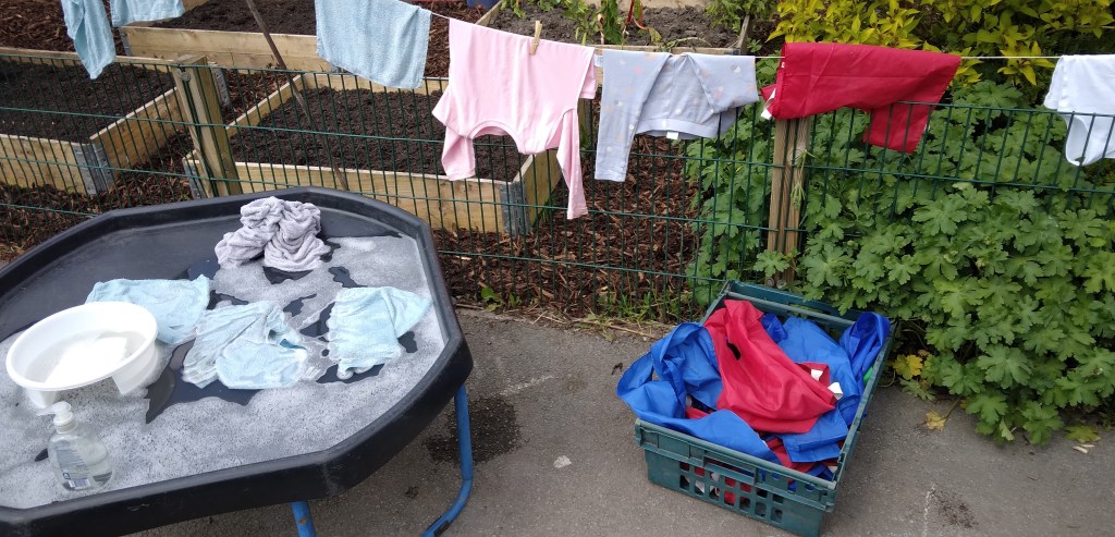 One of the topics that we’ve covered, was about the water. We talk about the importance of water: where it comes from and about water cycle. Children have enjoyed experiments with water both indoors and outdoors. They learn the differences between dirty and clean water and how to filter it, but also how to reuse water for washing up, practice to wash clothes outdoors and hung them on the washing line and how to store rainwater for gardening.