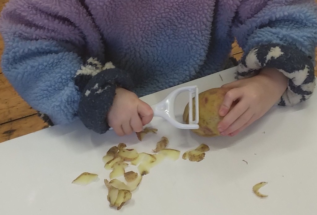 In Manchester Montessori house we focus on the topic of healthy living and benefits of growing our own fruit and vegetables: feeding organic eating organic, but also having the healthy balance in our life including movement, exercising and rest. Children were introduced to different activities. We look at our snack area while we discuss healthy choices. On our shelves we can find fruit, vegetables, plant-based milk only.  During the day children have access to Weetabix and porridge throughout. We also talk about importance of rest where we can recharge our bodies and our energy. After lunch time, in Montessori house, we sit together in a book corner reading stories or sharing stories, playing different games. We talk about importance of the outdoor play, where our body can get to exercise using different equipment: like scooters and bicycles, but also use the space around us to run, hop, jump. We have done a lot of obstacle courses with the children that encourage the health and movement outdoors. We go outside daily, no matter of the weather, to get fresh air and exercise our body and support the gross motor movement.