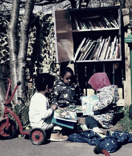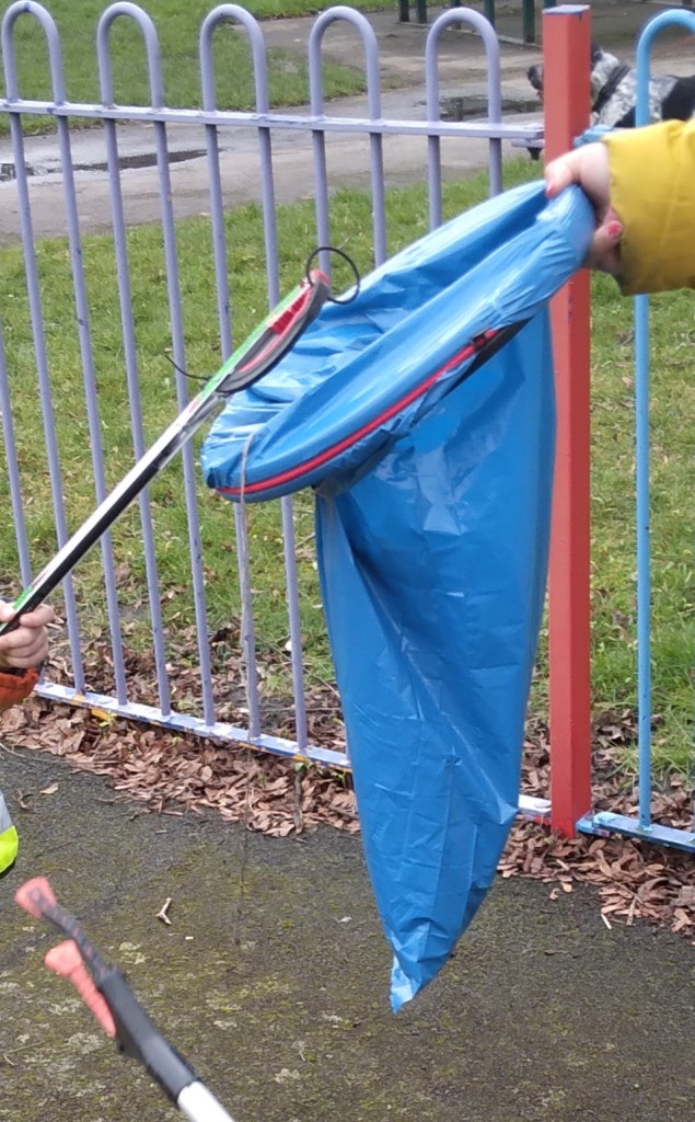Much as walking through the Community litter picking using litter pickers from the library and Biffa.
