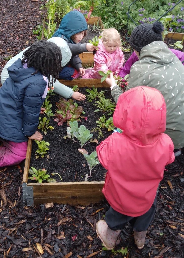 As every year in Manchester Montessori House, we talk about harvesting and the good we receive from the planet Earth. Together with children want to be grateful for it and we look at the cycle of life, the food chains, but also the fruits and vegetables that we are consuming. In the month of September, but also throughout the year, we explore different vegetables and fruit together with children. We grow them together and harvest them, we experiment while cooking and use them in our snack area. We use them in our creative corner, but also to introduce children to the different mathematical concepts: quantities, shapes, , number work. We explore them using our senses: sight and touch and taste, but also smell to cover our Sensorial Curriculum area and as mentioned use them to introduce children to the food chains and life cycles of fruit and vegetables, but also learning about the origins of fruit and vegetables and where they come from, support our learning of different cultures in our Cultural curriculum area. They are also perfect to be introduced in Linguistic area while learning about different sounds and letters, but also other languages. We can find them commonly in many books. We like sharing fruit and vegetables we grow with the community, as our garden is designed for growing and harvesting, we also plant and harvest our own fruit and vegetables.