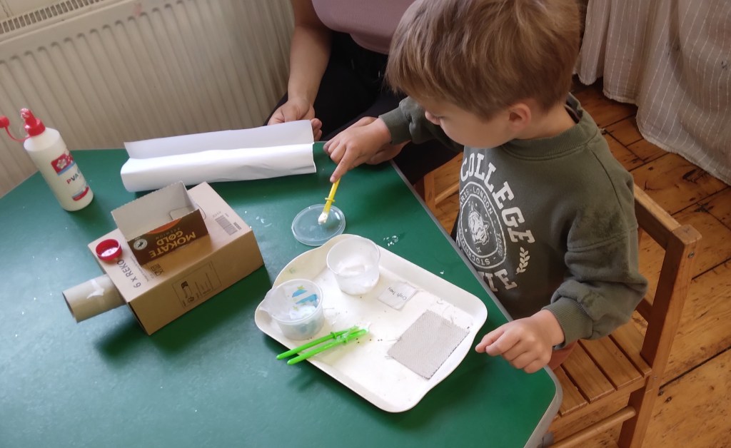 Children at MMH have enjoyed junk modelling, bringing in various materials like cardboard boxes of different shapes and sizes, tubes etc to create cars building robots using their ideas to reuse and repurpose the materials.