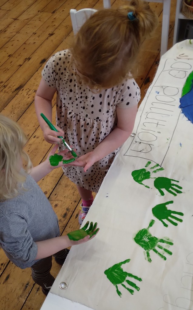 Children at MMH created a banner for the local community as they were holding an event promoting clean air, carbon footprints.